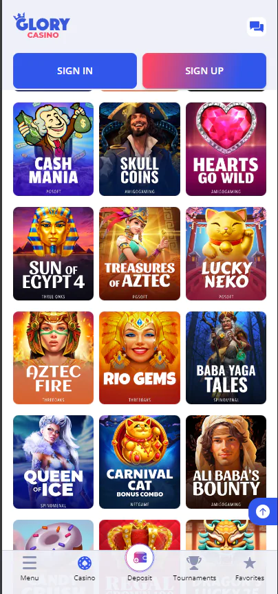 Glory Casino app yüklemeden önce, neler bekleyebileceğinize bir göz atın. Bu ekran görüntüleri, kullanıcıların bir app her şeyin nasıl tasarlandığını anlamalarını sağlayacaktır.