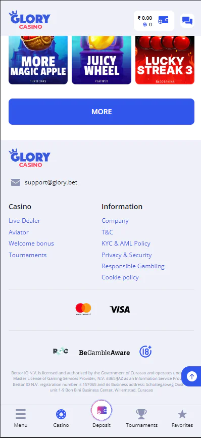 Glory Casino app yasaldır ve Bangladeşli kullanıcılar için hazırdır. Uygulama, şirketin en katı adalet standartlarına bağlı olduğunu gösteren Curacao eOyun Otoritesi tarafından lisanslanmıştır. Belge numarası 8048/JAZ’dır.